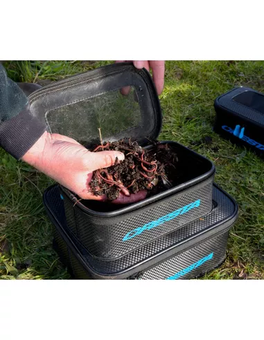 Deze aastas is gemaakt van waterdicht EVA waardoor je er probleemloos vochtig aas in kunt bewaren. Bovendien wordt voorkomen dat er vocht van de grond in kan trekken als je hem op vochtig gras neerzet. De bovenkant is af te sluiten met een fijne maas, waardoor deze aasbak zich uitstekend leent om aas dat gemengd is met levend aas zoals wormen of maden in te bewaren.