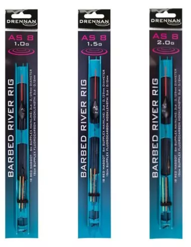De AS8 River Rigs zijn ontwikkeld in samenwerking met 5vouwdig wereldkampioen Alan Scotthorne, de klassieke dobber vorm in combinatie met de lange carbon onderantenne maken de AS8 de perfecte dobber voor het vissen op diepe kanalen met veel scheepvaart. Door dat het dobberoog gelijmd zit op de insert voor de verwisselbare antennes kan er op dit punt geen lekkage ontstaan. Elke dobber wordt geleverd met 4 verschillende antennes zodat voor elke licht situatie de juiste antenne kleur kan worden gebruikt.