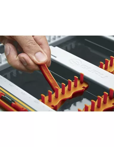 Met de verstelbare pinnetjes is het mogelijk om al jouw onderlijnen op te bergen. Variërend van 5 tot 70cm wanneer dubbel geslagen!
