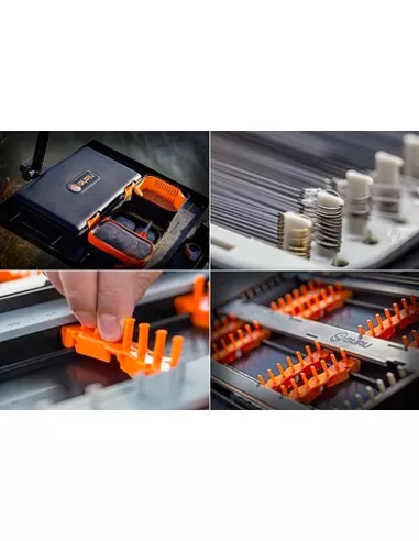 De XL Rig Case is ontworpen om een grote diversiteit aan onderlijnen in op te bergen. Daarnaast is de XL Rig Case waterdicht en zal zelfs blijven drijven wanneer deze onverhoopt in het water valt. In totaal kunnen er meer dan 1000 onderlijnen in worden opgeborgen met een lengte variërend van 5 tot 70cm!