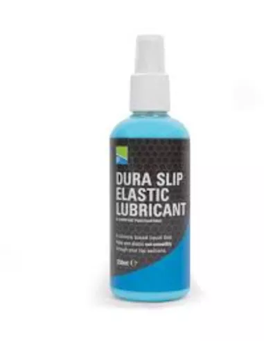 PRESTON DURA SLIP LUBRICANT 250 ml is een vloeistof op siliconen basis die er voor zorgt dat het elastiek niet uitdroogt en soepel door de delen glijdt .