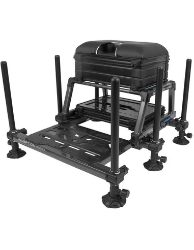 De cassette onder het frame wordt geleverd met een 26 mm lade en deksel, indien nodig kunnen hier extra laden aan toegevoegd worden. De zitkist wordt geleverd met zes telescopische poten, waardoor een nauwkeurige afstelling op de oever geen probleem is.