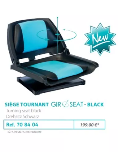 Rive Giroseat draaistoel / bootstoel in de nieuwste Rive Aqua kleuren en met een zwarte onderbouw zodat hij ook goed matcht op de zwart uitgevoerde kisten. Deze Bootstoel past op alle Rive stations en vervangt de zitting.